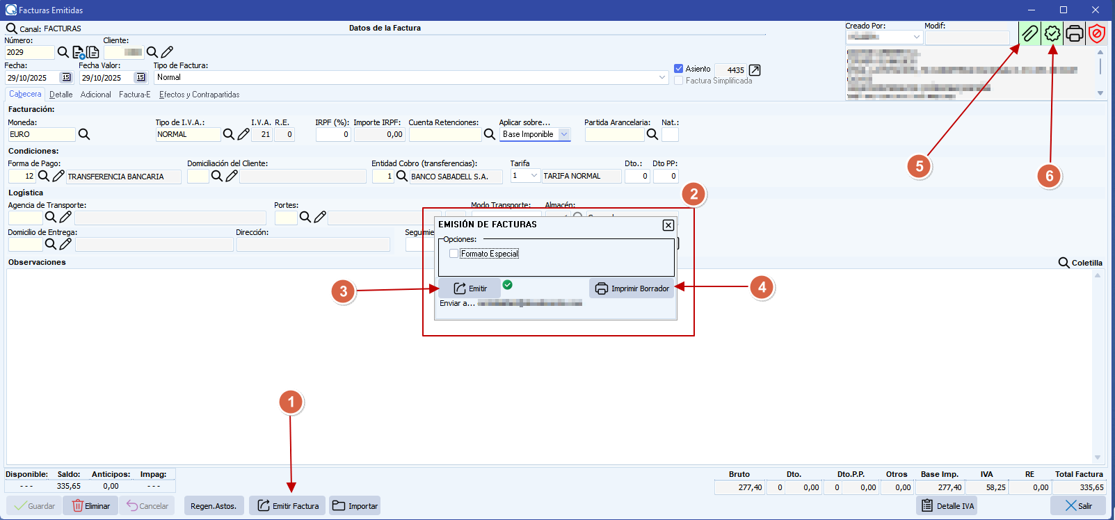 3.- Botón para la EMISION de la factura (Se envía a Verifactu).